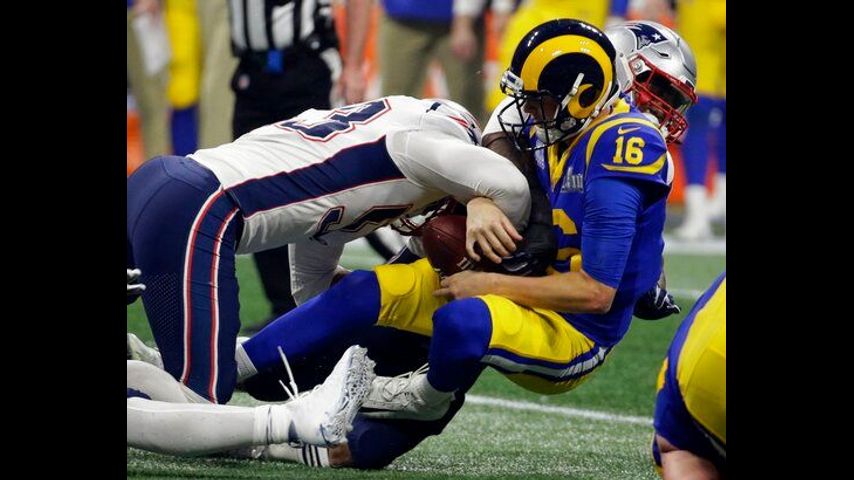 Though Goff's teammates and coaches refused to blame him, Los Angeles' 24-year-old quarterback had one of the rougher performances in Super Bowl history. Along with his 19 incompletions, he was sacked four times, committed a key false start in the fourth quarter and finished with a 57.9 passer rating.