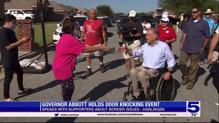 Gov. Greg Abbott knocked on doors in the Harlingen area Saturday morning to speak to voters about border issues.