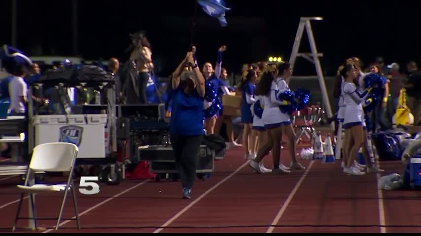 The rest is history. After every touchdown, Navarro runs up and down the sideline with a Patriots flag. If she has it her way, Mission Veterans is going home with a win.