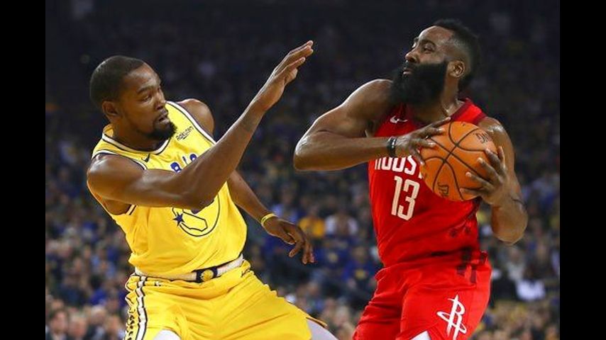 Harden rallies Rockets in OT to edge Warriors 135-134