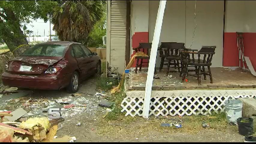 A total of six people, five children and one adult, were outside a Harlingen home when an SUV plowed through the front yard fence into the structure.