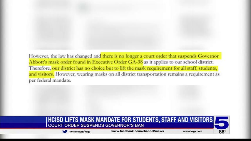 Harlingen CISD lifts mask mandate for students, staff and visitors