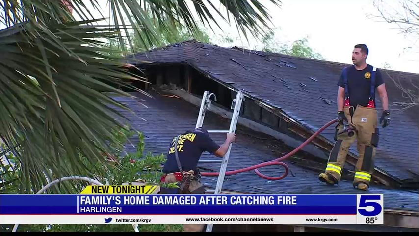 A family's home is damaged after catching fire in Harlingen on Tuesday.