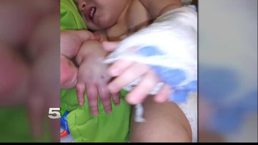 Johnson turned on the lights and immediately noticed her baby's hand was three sizes bigger than it regularly is.