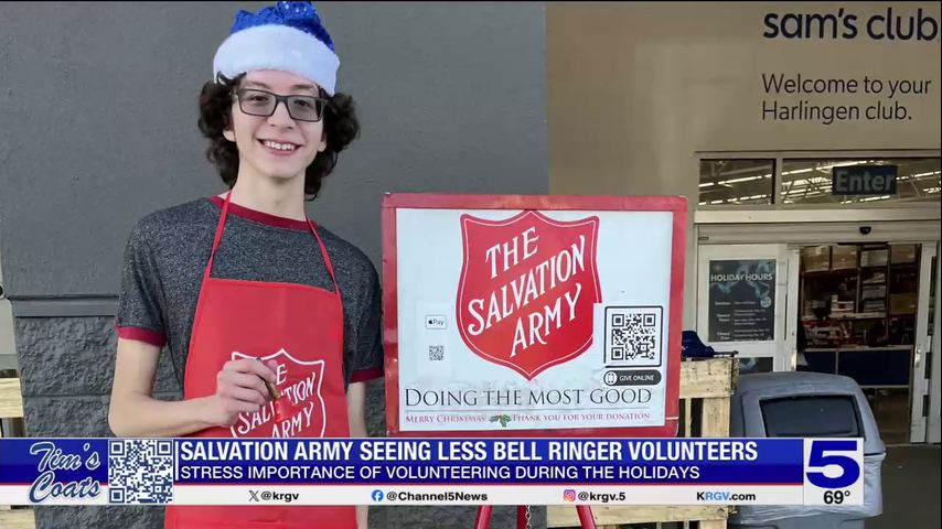 Vega is one of 14 bell ringer volunteers. The Salvation Army says they need 18 in order to cover all stores.