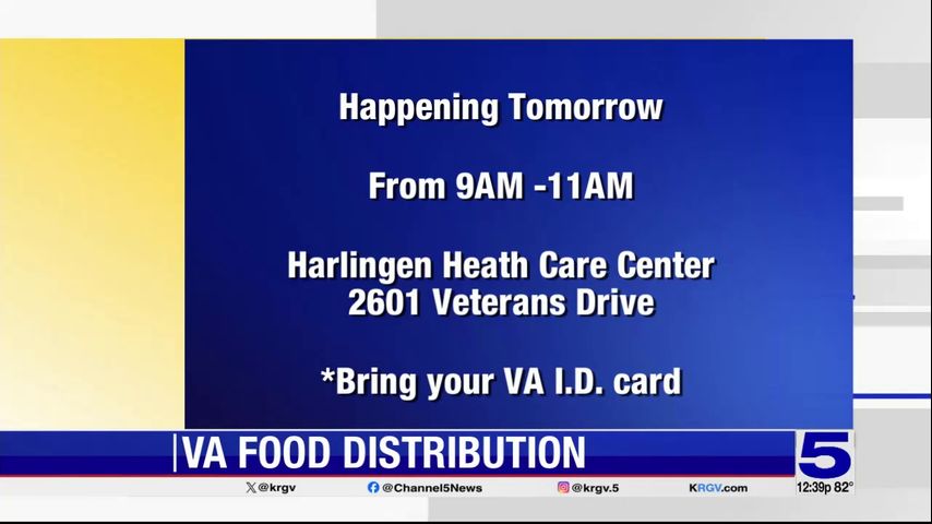They will distribute the food from 9 a.m. to 11 a.m. at the Harlingen VA Clinic, located at 2601 Veterans Drive.
