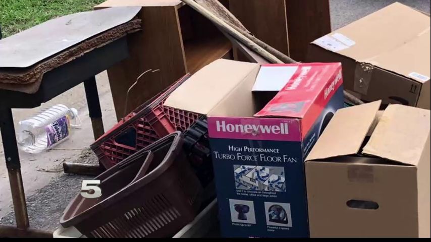 She says she has been putting all the damaged furniture, debris and trash outside as the city has requested.