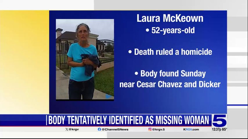 Hidalgo County Sheriff's Office spokesman Sgt. Enrique Longoria said investigators "tentatively" determined the body was that of Mckeown after investigators reviewed the clothing the woman was wearing.