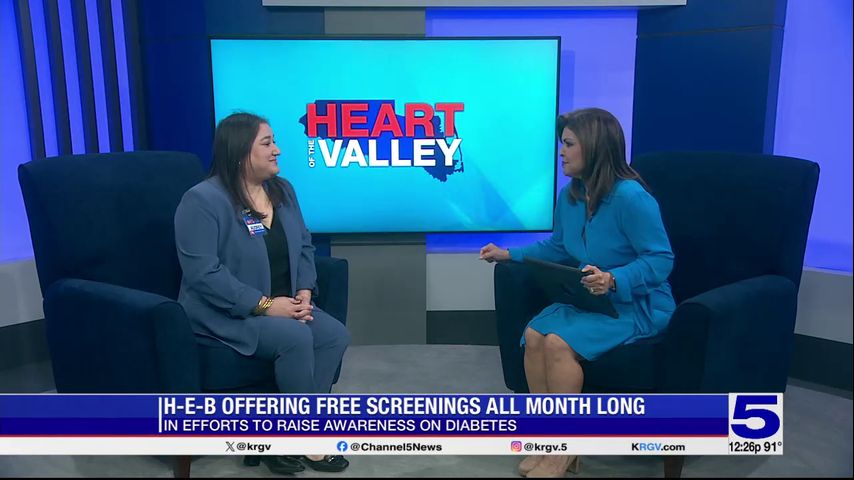 HEB Border Public Affairs Audrey Guerra speaks with Channel 5 News' Dina Herrera Garza on how HEB's throughout the Valley are offering free glucose screenings.