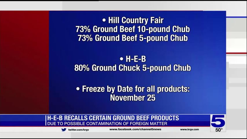 Affected products include: the five and 10 pound chubs of Hill Country Fare's, 73% ground beef, and HEB's 80% ground chuck.