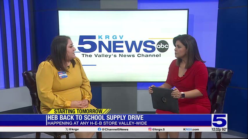 HEB Border Public Affairs Audrey Guerra speaks with Channel 5 News' Dina Herrera Garza about their back-to-school supply drive that kicks off Wednesday.
