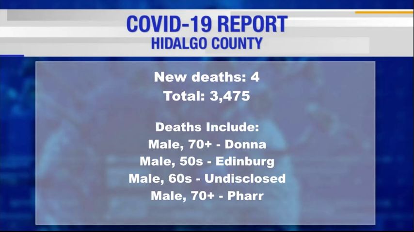 The deaths include four men from the cities of Edinburg, Donna, Pharr and an undisclosed city. All four victims were over the age of 50.