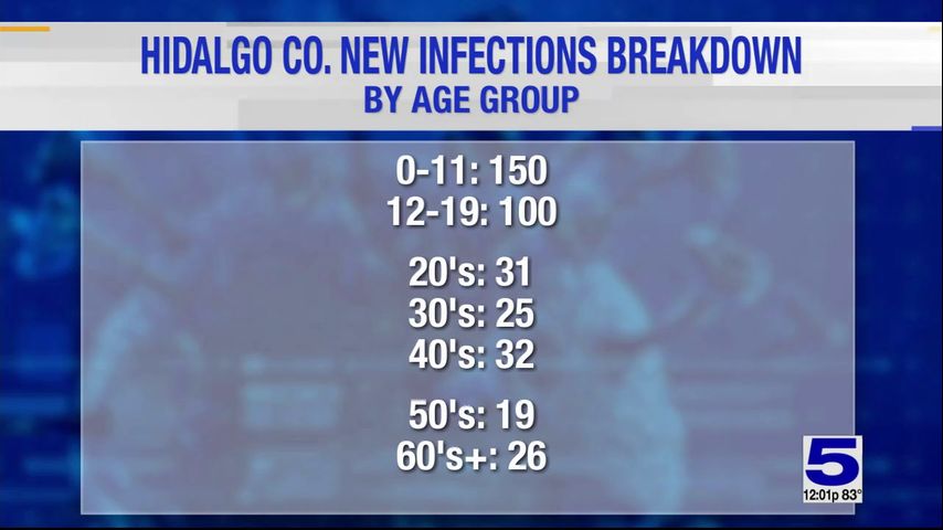 The 383 people who tested positive in Hidalgo County are in the following age groups: