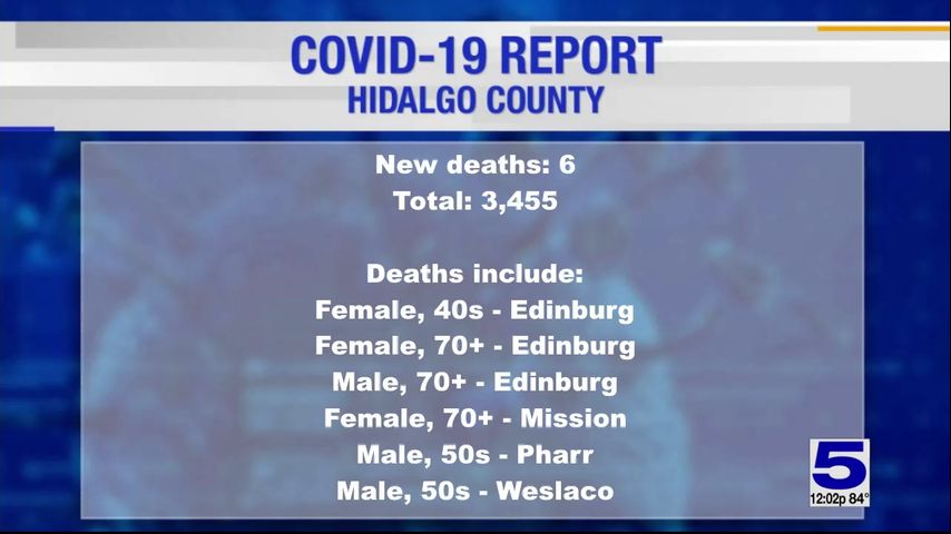 The deaths include three women and three men from Edinburg, Mission, Pharr and Weslaco. They ranged in age from their 40s to 70s.
