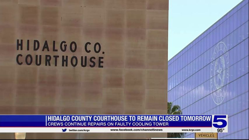 The Hidalgo County Courthouse will remain closed for the third day in a row as crews continue to work on fixing a faulty cooling tower.