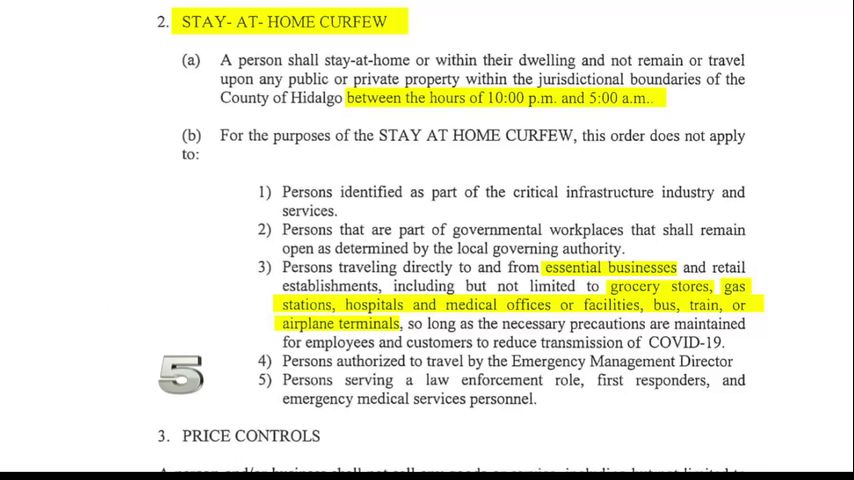 "A person shall stay-at-home or within their dwelling and not remain or travel upon any public or private property within the jurisdictional boundaries of the County of Hidalgo," according to an amended emergency order, "between the hours of 10 p.m. And 5 a.m."