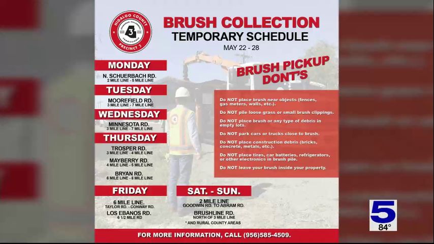 Hidalgo County is having a new temporary brush collection schedule starting on Monday, May 22.