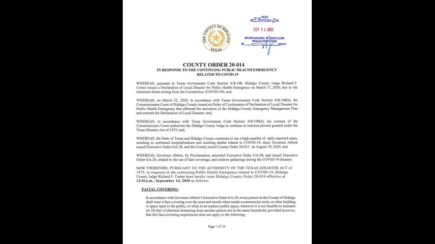 The new order includes the following rules, according to Hidalgo County: