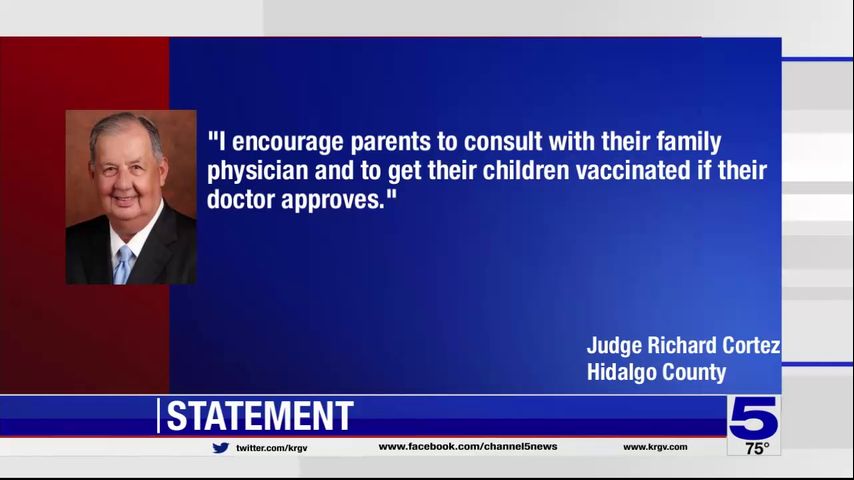 Hidalgo County Judge Richard Cortez weighed in on approval, encouraging parents to "consult with their family physician and to get their children vaccinated if their doctor approves."