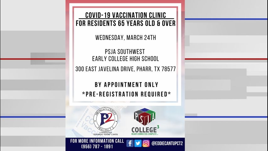 Hidalgo County Precinct 2 will hold a COVID-19 vaccination clinic for people 65 years and older on Wednesday, March 24.