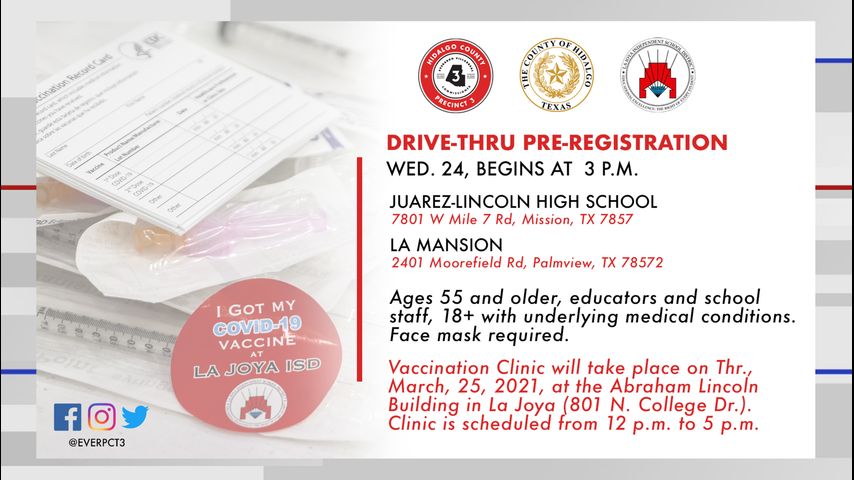 Hidalgo County Precinct 3, La Joya ISD to host COVID-19 community vaccine clinic