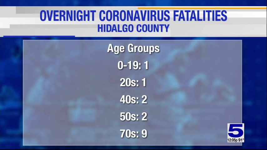 Seven men and eight women from Edinburg, McAllen, Mercedes, Mission, Weslaco an undisclosed city died as a result of the virus, according to Wednesday's report from the Hidalgo County Health and Human Services Department. The youngest victim was a female in the 0-19 age range from McAllen.