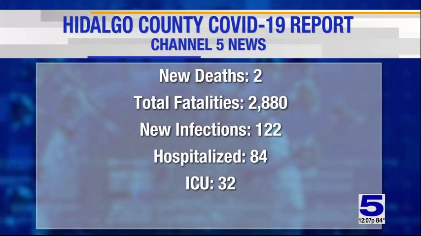 Hidalgo County on Wednesday reported 122 positive cases of COVID-19 and two coronavirus-related deaths.