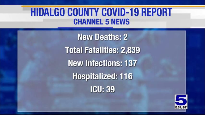 Hidalgo County on Tuesday reported two coronavirus-related deaths and 137 positive cases of COVID-19.