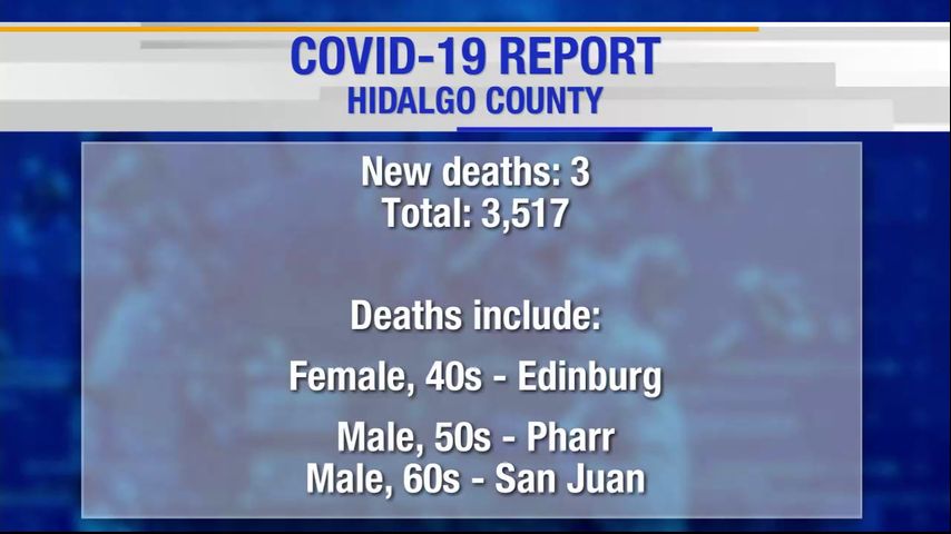 A woman in her 40s from Edinburg, a man in his 50s from Pharr and a man in his 60s from San Juan died as a result of the virus, according to the report. Two of the individuals were not vaccinated.