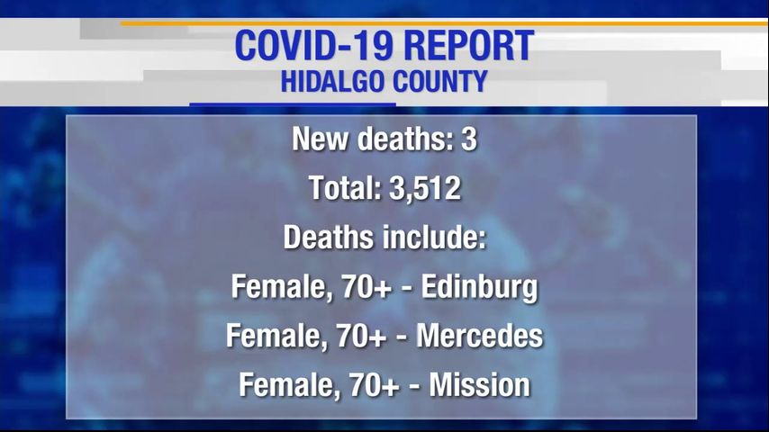 Three women from Edinburg, Mercedes and Mission died due to the virus. They were all in their 70s. Of the three deaths, two were unvaccinated, according to the report.