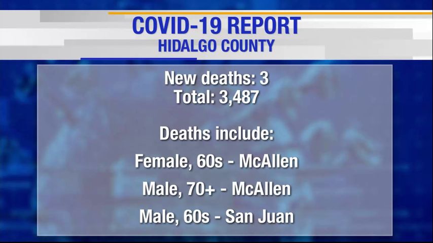 The deaths include a woman in her 60s from McAllen, a man in his 70s from McAllen and a man in his 60s from San Juan.