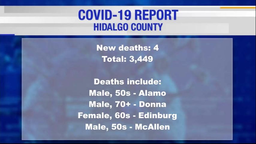 The deaths include three men and one woman from the cities of Alamo, Donna, Edinburg and McAllen. Their ages ranged from their 50s to over the age of 70.