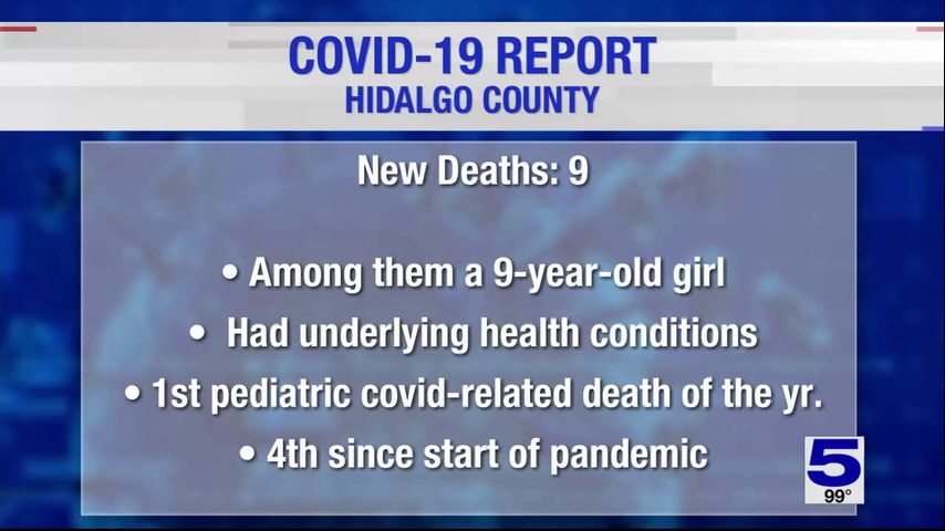 Hidalgo County Health Authority Dr. Ivan Melendez said the 9-year-old girl had multiple underlying health conditions and did not provide further details.