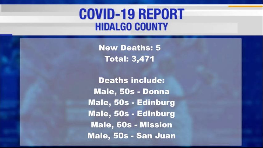 The deaths include four men in their 50s from Donna, Edinburg and Mission and a man in his 60s from Mission.