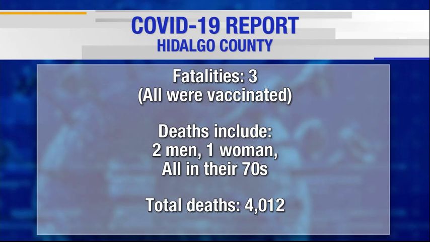A woman from Hidalgo, a man from McAllen and a man from Pharr died as a result of the virus. They were all in their 70s or older and were all vaccinated, according to the report that covers a two-day period from Oct. 4 through Oct. 6.
