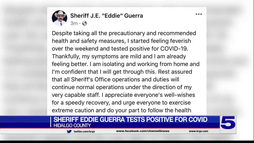 Hidalgo County Sheriff J.E. "Eddie" Guerra has announced on Facebook that he has tested positive for COVID-19.
