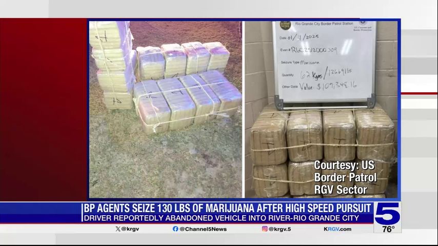 Rio Grande City Border Patrol agents seized over 130 pounds of marijuana after a high speed pursuit.