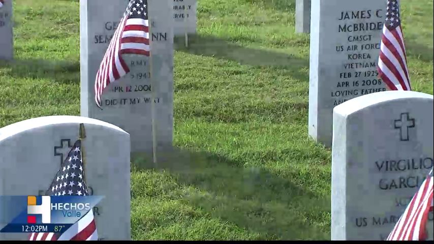 Con gran respeto y orgullo las familias colocaron las banderas estadounidenses a sus héroes en el cementerio RGV State Veterans de Mission.