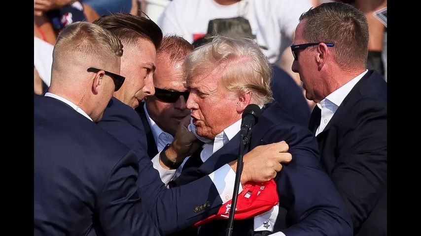 U.S. Secret Service rushed Trump off the stage at the campaign rally in Butler, Pennsylvania. Blood appeared to be streaked across the former president’s ear. Trump was taken to safety.