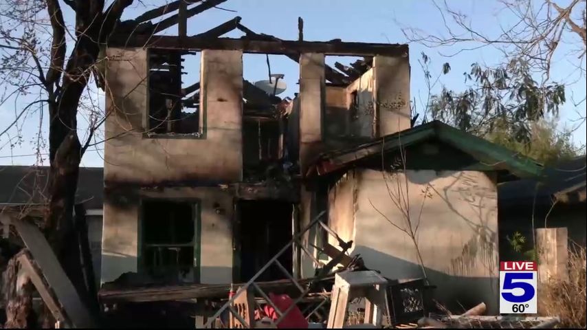 The family says a relative was hospitalized with burns on his head and body, and two of their dogs didn’t survive as a result of the fire.