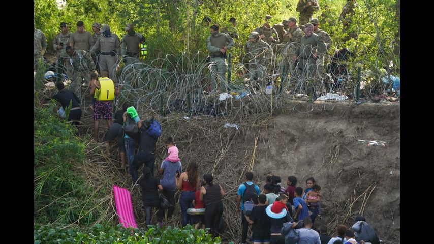At the Rio Grande in Matamoros on Wednesday, migrants arrived steadily. Many stripped down before descending the steep riverbank grasping plastic bags filled with clothes. They slowly waded into the river as more migrants arrived, some crossing themselves before following the line across the flowing border. One family swaddled a tiny baby inside an open suitcase. A man held it atop his head while another waded beside him as a precaution. Other children rode on shoulders. On the U.S. side they scrambled up the bank, pausing to put on dry clothing, before carefully picking their way through the rows of concertina wire.