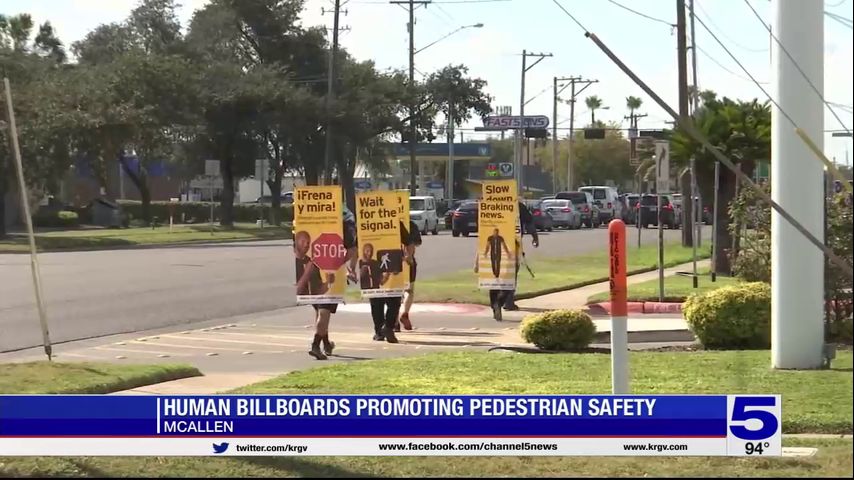 Human billboards were promoting pedestrian safety in McAllen Wednesday.