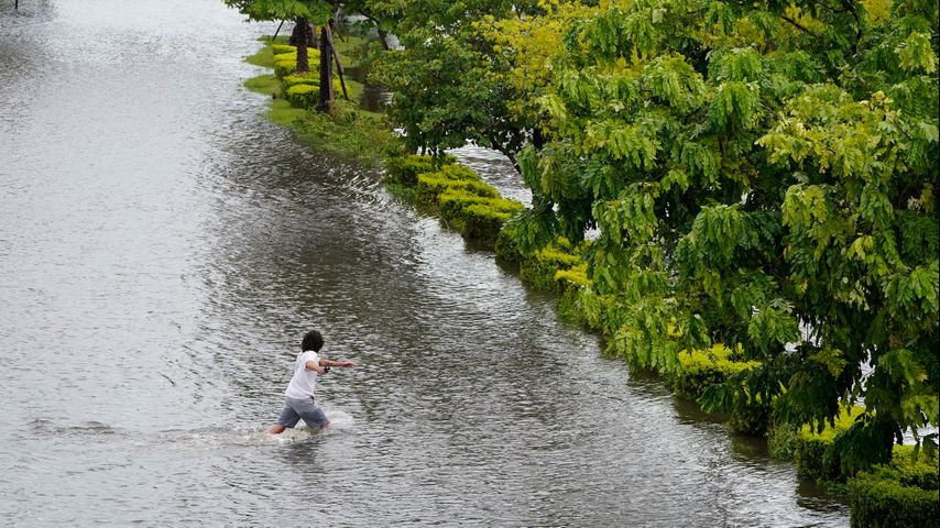 Astounded by the flooding that turned Tampa's Bayshore Boulevard into a river, Bill Hall watched a paddleboarder ride along the major thoroughfare.