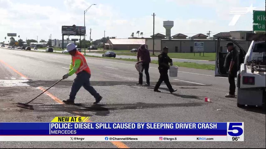 An hour long-closure on the expressway in Mercedes to clean up a diesel spill was caused by a driver asleep at the wheel, according to the Mercedes Police Department.