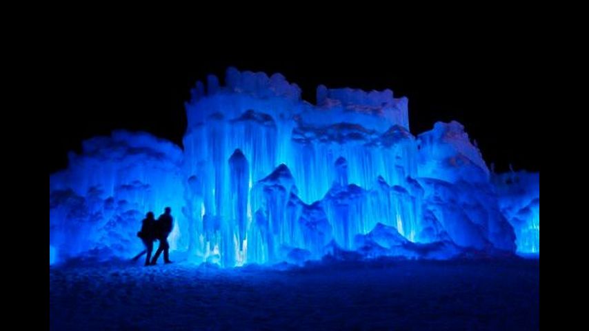 NORTH WOODSTOCK, N.H. (AP) - On a clear, frigid night in a courtyard made of walls of ice, Bruce McCafferty and his young son stand mesmerized, bathed in the pulsating rainbow light emanating from a series of stout ice formations.