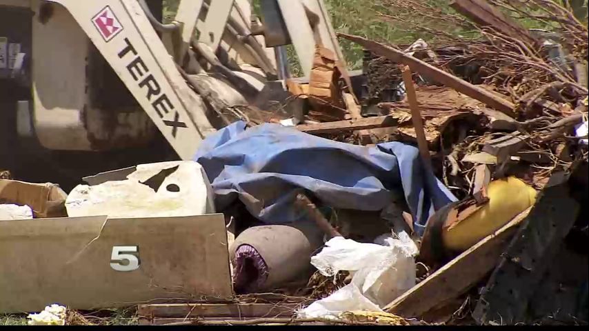 Hidalgo County Precinct Four cleans the piles of debris left behind on Wisconsin Road in Edinburg; the person dumping the garbage remains a mystery.