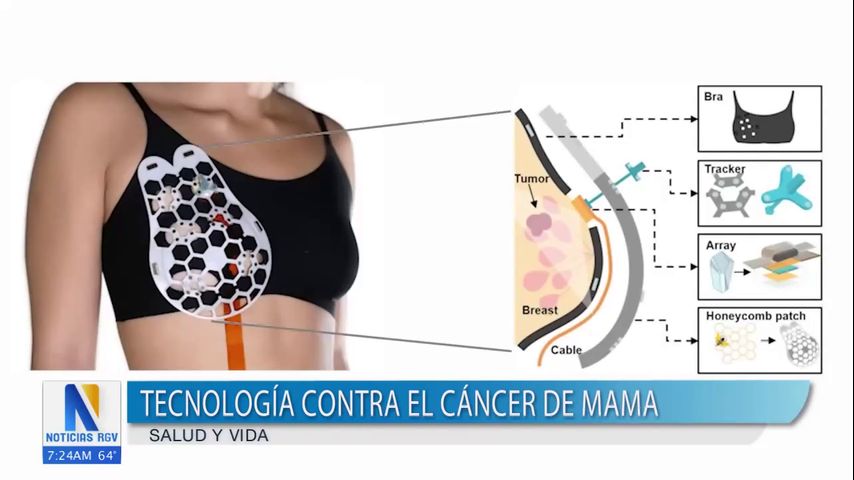 Fabricado con una impresora 3D, el parche de plástico se coloca sobre el sujetador. Las imágenes por ultrasonidos son captadas por un minúsculo rastreador que se desplaza alrededor del parche, girando 360 grados, proporcionando imágenes en tiempo real desde múltiples ángulos. Funciona en todo tipo de mamas, incluidas las densas.