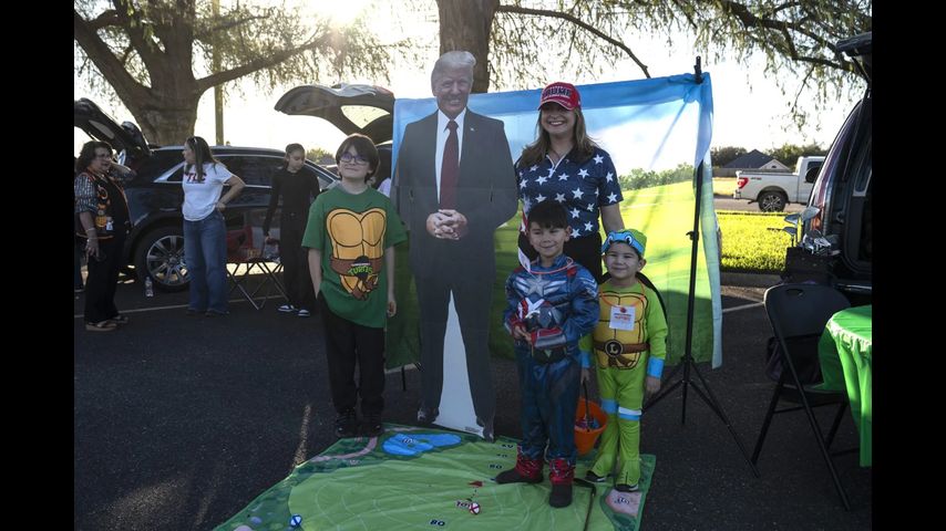A little after 5 p.m. on the last Thursday of October, a stream of princesses, superheroes and unicorns — most under 4 feet tall — began to make their way around the parking lot of the GOP headquarters, bags open for Halloween candy. Families visited open car trunks run by campaign volunteers for Gov. Greg Abbott and Donald Huffines, a state comptroller candidate. Among the cars was a life-sized cutout of Trump standing next to a makeshift miniature golf green, an homage to the president’s private Mar-a-Lago Club.
