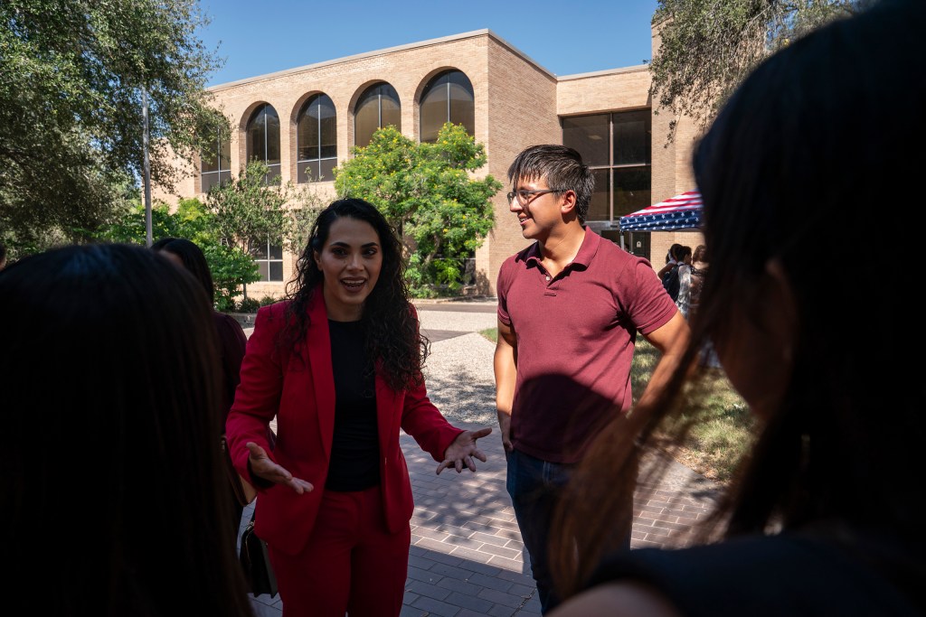 But a late October Turning Point event on campus foreshadowed some of the challenges and hostilities that lay ahead. Uscanga hosted Flores, the one-term congresswoman who is running for reelection, for a Kirk-styled “Prove Me Wrong” debate. Clad in a red pantsuit, Flores clashed with students for more than two hours in sweltering 90-degree heat over the government shutdown, health care, and LGBTQ+ rights.