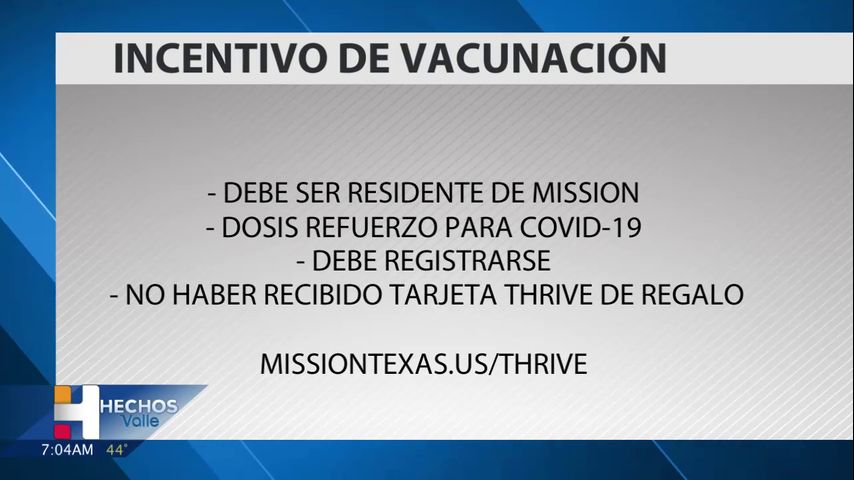 Si usted es residente de la ciudad de Mission Y recibió su vacuna de refuerzo antes de que iniciaron las clínicas de vacunación de incentivos en la ciudad, usted puede calificar para recibir una tarjeta de regalo de $50 del programa (Thrive) si llenan los siguientes requisitos: